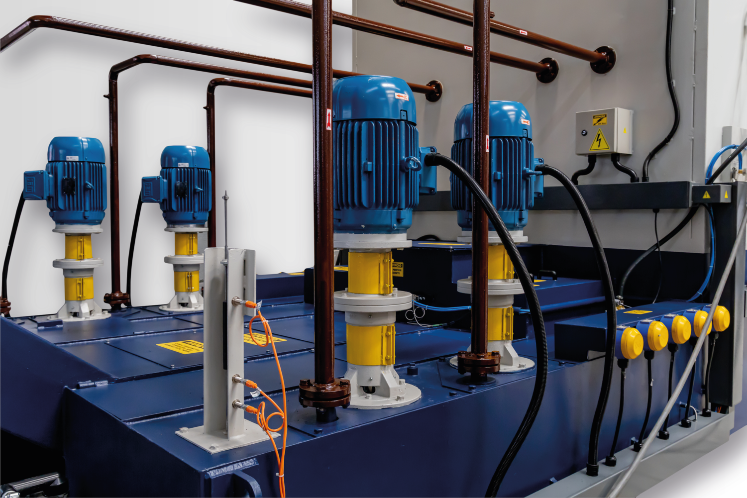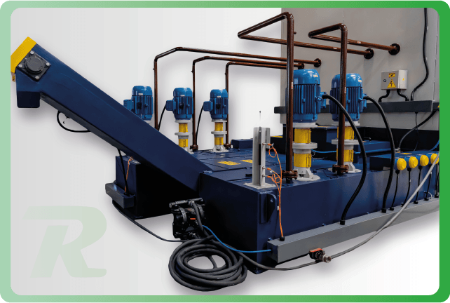 Os tanques possuem volumes de 5.000 litros e projetados com chicanes, válvulas desviadoras e raspador de fundo para retirada de borra de tinta, possibilitando longevidade do removedor de tinta, menor consumo de água, energia e principalmente produtos químicos.